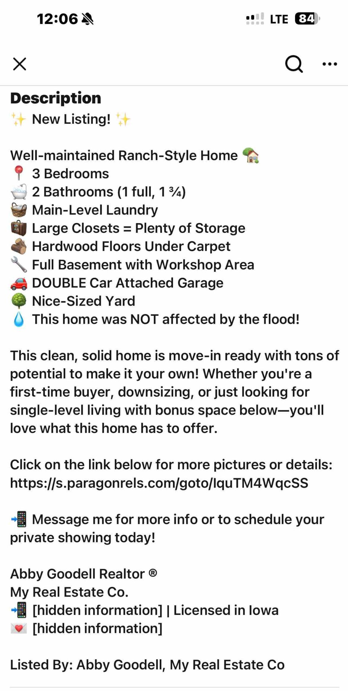 - Headline: “New Listing!” plus bed/bath emojis